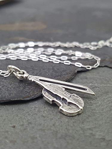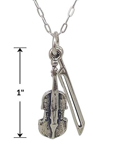 Sterling Silver Violin with Bow Fiddle Musical Instrument 3D Charm Necklace, 18″