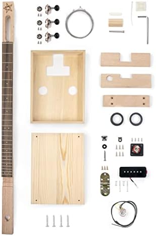 StewMac DIY 3-String Fretted Acoustic Electric Cigar Box Guitar Kit with P-90 Pickup, Standard 24-5/8″ Scale Length And Fret Spacing, Detailed Illustrated Instructions