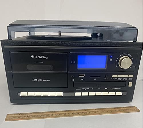 TechPlay ODC128BT 3-Speed Turntable with Cassette Player/Recorder, CD,MP3 SD Card/USB Player, Digital AM/FM Radio, AUX in, Line Out Alarm Clock, Remote and External Speakers (Black Wood)