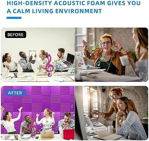 TEMGCUAM 24 Pack Sound Proof Foam Panels|1″×12″×12″ Quick-Recovery Soundproof Wall Panels | High Density Sound Dampening Panels for Home Studio (Purple)