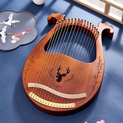 TienClef Lyre Harp 16 Metal String Ancient Greece Style Classical Shaped Deer Pattern Lyra Box Harp with Tuning Wrench and Instruction Guide for Adult kids and Beginner (Coffee)