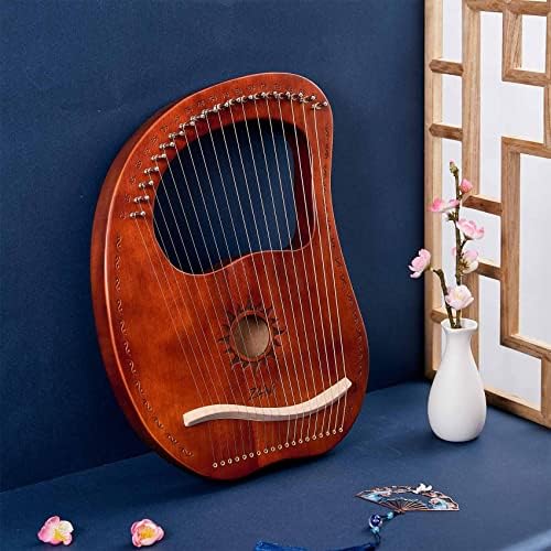 TienClef Lyre Harp 19 String Ancient Greece Style Mango Shaped Deer Pattern Lyra Box Type Harp with Tuning Wrench and Instruction Guide for Adult kids and Beginner (Coffee)