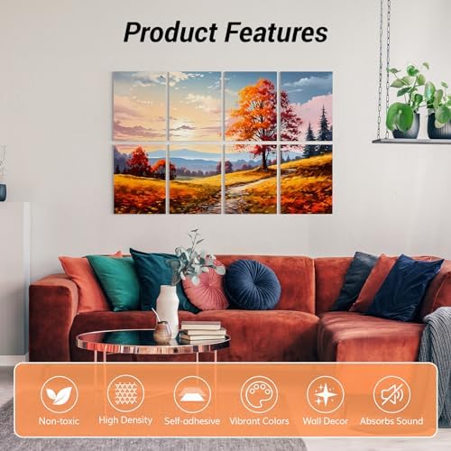 Product Specification: The full size is 48×32 inches (120×80cm), divided into 8 pieces, each piece measures 16×12 inches (40x30cm), the thickness is 0.4 inches (0.9cm). When unpacked, we recommend assembling these fragments into a complete picture first, and then sticking them onto the wall one by one.