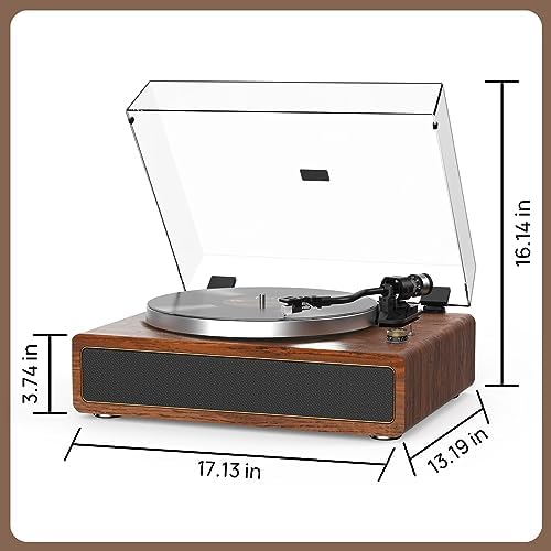 Turntable Record Player with Built-in Speakers, Vinyl Record Player Support Bluetooth Playback Auto Stop 33&45 RPM Speed RCA Line Out AUX in All-in-one Belt-Drive Turntable for Vinyl Records
