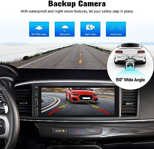【Car Stereo with 12LED Backup Camera】Standard come with a unique 12-LED Waterproof reverse camera, bringing clear night vision and wide viewing angle. The 6.86 inch touch screen will automatically display the reverse image once you put the car into rear gear, which makes your daily parking safer and more convenient.