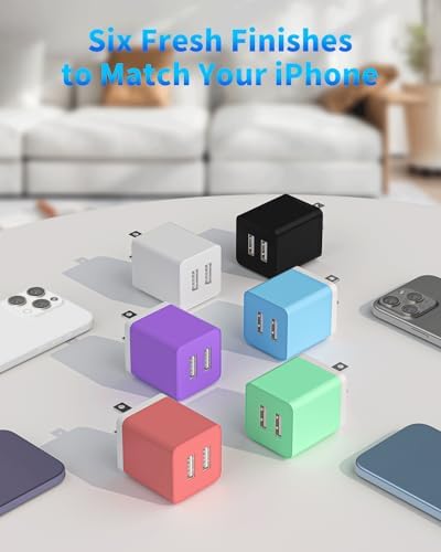USB Wall Charger,6-Pack USB Charger Fast USB Charger Block 2.4A Dual Port USB Cube Power Adapter Charger Plug Charging Box Brick for iPhone 15 14 13 12 11 X,iPad,Samsung,LG,Google,Android – Multicolor