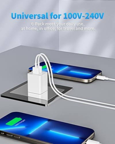 tiavalmax Wall Charger,6-Pack 2.4A Dual Port USB Power Adapter Plug Charging Block Cube for iPhone, iPad, Samsung Galaxy, LG, Moto, Android Phones