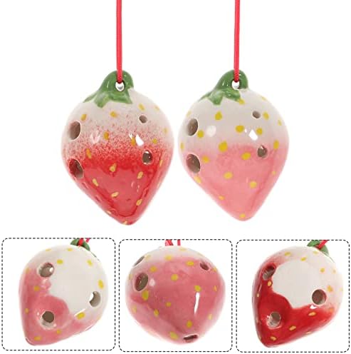 Vaguelly 2 Sets Strawberry Modeling Ocarinas 6 Hole Ac Tones Ocarina Beginners Music Fruit Shape Porcelain Ocarina with Lanyard for Kids Beginners Musical Instrument Playthings