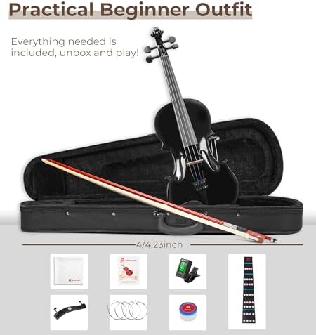 Vangoa 4/4 Violin Adult Full Size Acoustic Violin Fiddle Beginner Set with Violin Case, Rosin, Shoulder Rest, Tuner, Strings, Violin Bow, Fingerboard Sticker,Black