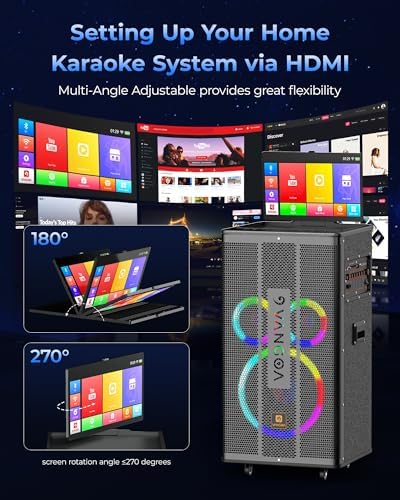 Professional Karaoke Machine with Lyrics Display Screen, Built-in LED Lights