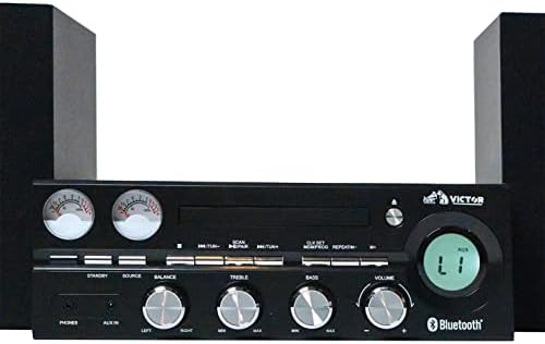 VICTOR Milwaukee 50 Watt Desktop Bluetooth Stereo System with CD/MP3 Player, FM Radio, Functioning VU Meters, and Detached Stereo Speakers, Black