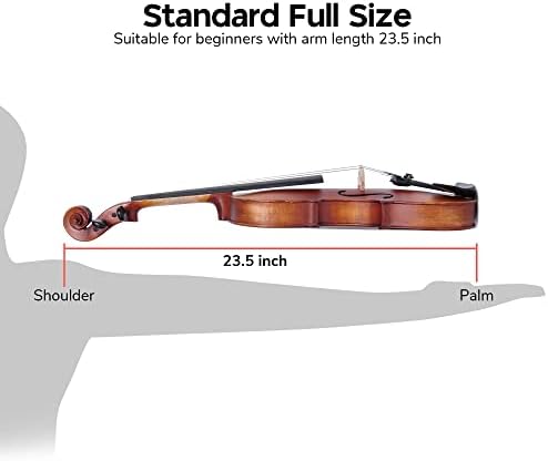 – 4/4 full size violin is suitable for all the violin starters or students over 12 years old, please measure from the middle of left arm to the neck for the measurements; Easy to set up for playing, with only the bridge to be slightly adjusted for starting violin journey easily