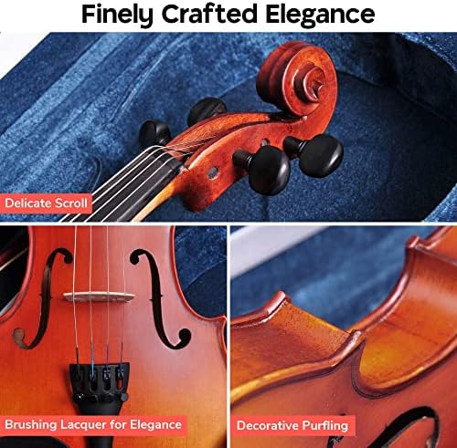 [Complete Outfit]: Comes with extra accessories including rosin and violin case to make playing hassle free; Rectangular violin case with designated large slots to secure violin and bow safely in place without sliding around, soft velvet-like protective lining to prevent scratching and dirt