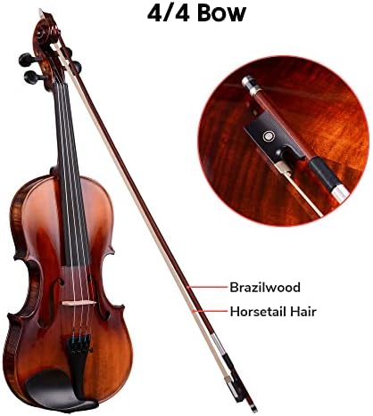 [Standard Full Size]: 4/4 full size violin is suitable for all the violin starters or students over 12 years old, please measure from the middle of left arm to the neck for the measurements; Easy to set up for playing, with only the bridge to be slightly adjusted for starting violin journey easily; With chin rest to provide you comfort & stability