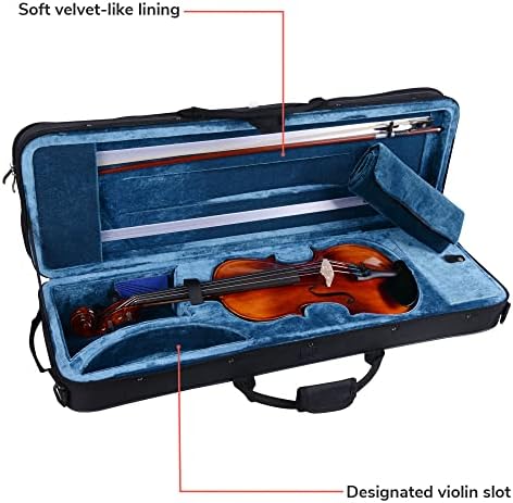 [Complete Outfit]: Comes with extra accessories including rosin and violin case to make playing hassle free; Rectangular violin case with designated large slots to secure violin and bow safely in place without sliding around, soft velvet-like protective lining to prevent scratching and dirt