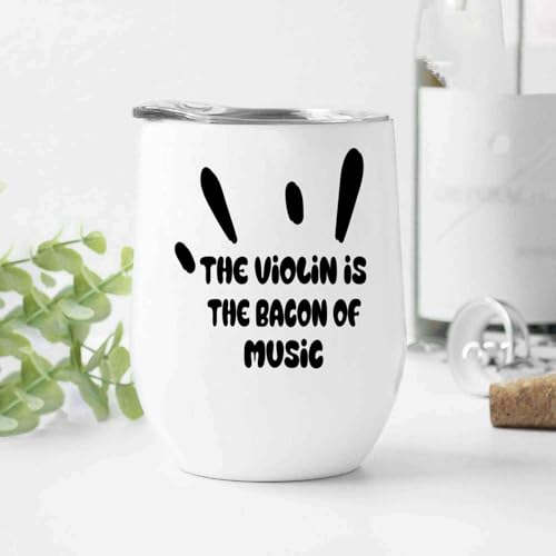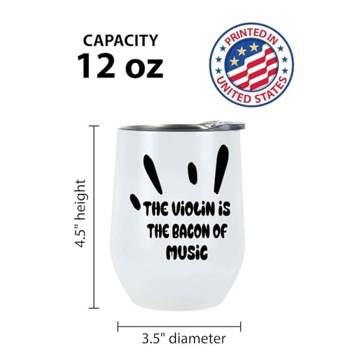 Violin Music Lover’s Gift – Inspirational with Musician’s Quote – 12 Oz White Stainless Steel Wine Tumbler