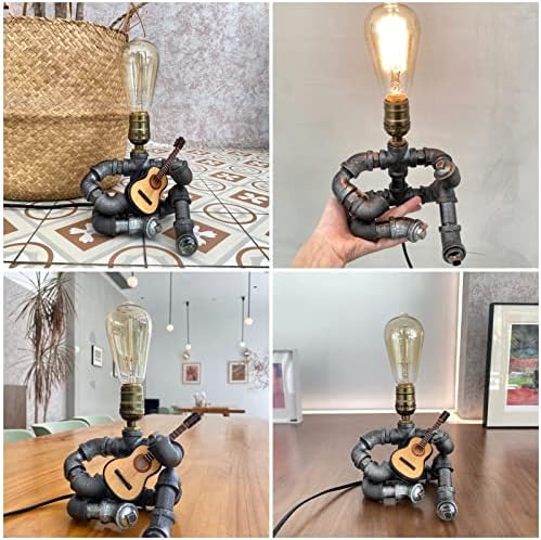 Wibota Guitar Music Table Lamp, Guitar Gifts for Men players, Guitar Accessories, Steampunk musician, music lovers stuff, Guitars light gift ideas,Metallica Robot Microphone Desk Lamp Art Decor