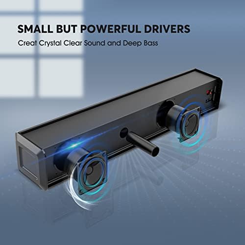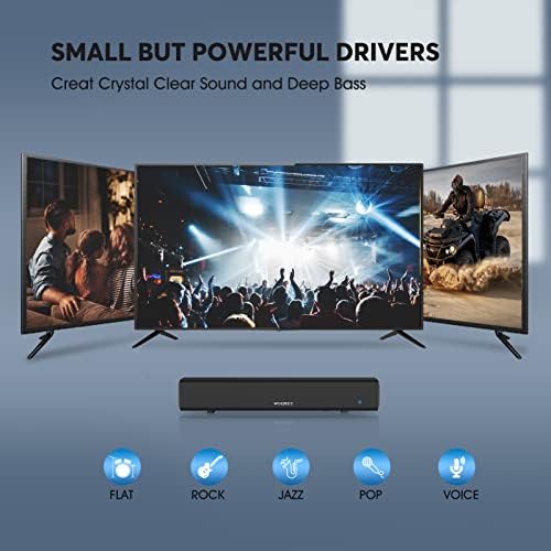 16-Inch Mini Soundbar: features an ultra-slim and classical compact design, perfect for small room spaces, such as bedrooms, kitchens, and student dorm rooms, and suits any desktop space.