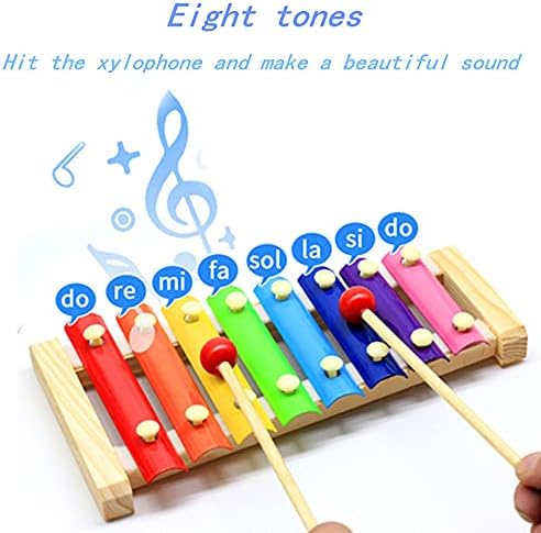 Great Musical Toys:The xylophone is crafted with 8 accurately tuned & brightly-colored keys of different sizes, which is great for developing rhythm and music skills. With well-made and vibrantly colored metal keys that produce the clearest tones, this colorful and sturdy xylophone instrument will help your kids create the most magical sounds.