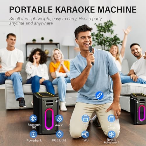 Zeelink Karaoke Machine with Two Wireless Microphones, 150W Powerful Portable Bluetooth Speaker for Adults & Kids, with 15000mAH high-Capacity Battery, LED Lights, Supports TWS/REC/AUX/USB/TF