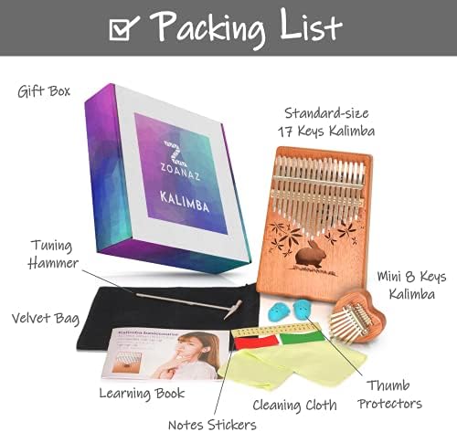 Zoanaz Kalimba Thumb Piano 17 Keys and Mini Kalimba 8 Keys. Gift Box Includes 2 Kalimbas Cute Bunny Heart Shape. Complete Set of Mbira Finger Piano