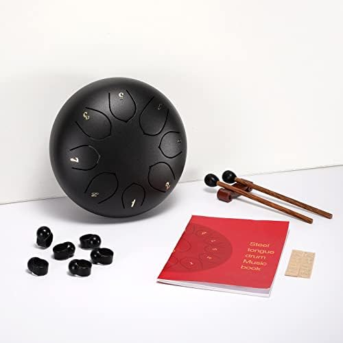 ZXZYHFTY Steel Tongue Drum, 6 Inch 8 Note Steel Hand Drum with Bag, Music Book, Drumsticks, Mallet Holder and Finger Paddles, for Camping, Meditation or Yoga .(Black-6Inch)